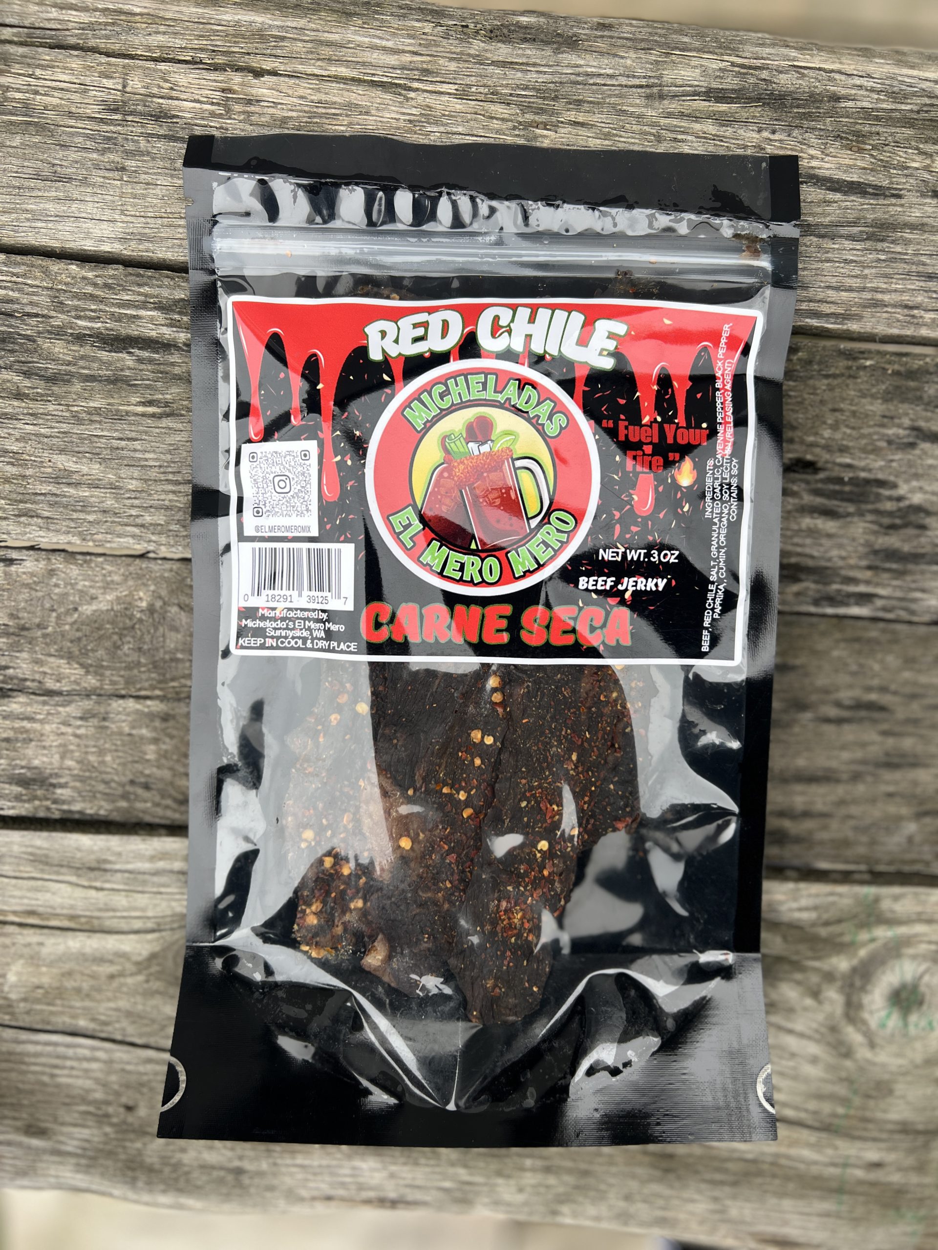 - Turn up the heat with Micheladas El Mero Mero’s Fuego Azul Carne Seca – our boldest and spicy beef jerky yet! Made with premium cuts of beef and coated in signature blur chile powder blend, this 3oz bag of fiery goodness is packed with flavor, heat, and attitude. Whether you are snacking on the go or pairing it with your favorite Michelada, Fuego delivers a mouthwatering punch that keeps you coming back for more.